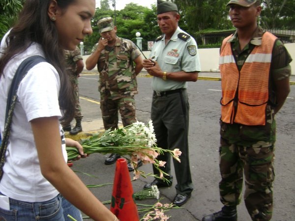 Es raro, rarísimo, que un nicaragüense rechace flores y el General Avilés lo es, nicaragüense. Las flores eran lindas, y además eran ciudadanas flores entregadas por un grupo de jóvenes que se sentaron a protestar porque existen denuncias de que andan muchos miembros del ejército en labores que no les competen.