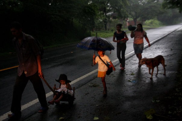La familia Meléndez evacua su hogar, en los alrededores del río Jiboa, en La Paz, después de que el río se saliera de su cauce. Fotografía de Frederick Meza.