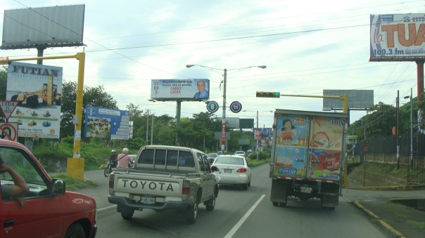 Managua plagada de rótulos de Daniel Ortega, el candidato por el Fsln. Foto tomada ayer por la mañana, mientras conducía.